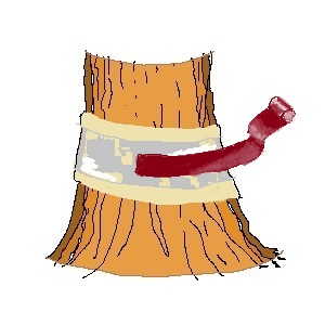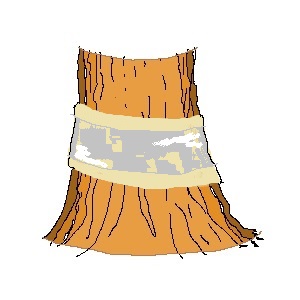 ごつごつした幹にガムテープを巻いても、ガムテープと幹の間に隙間が出来るからです。