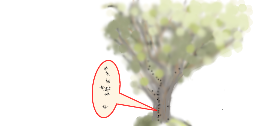 そこで、なんとかアリを木に登らせない方法は無いのでしょうか?
