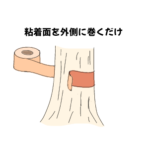 ガムテープを使う方法はとっても簡単なんですが、木の幹の表面がごつごつした樹木にはうまくいきません。