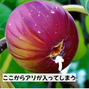 特に「いちじく」は熟すと自然に身が開くので、アリは簡単にその中に入ってしまいます。