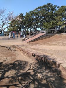 そこでおすすめなのが緩やかなスロープを利用することです。例えば下の写真のようなところです。