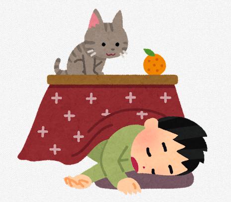 無理にこたつに入りながら横になろうとすると体をくの字に曲げて寝る事になり、長時間は厳しい姿勢になってしまいます。