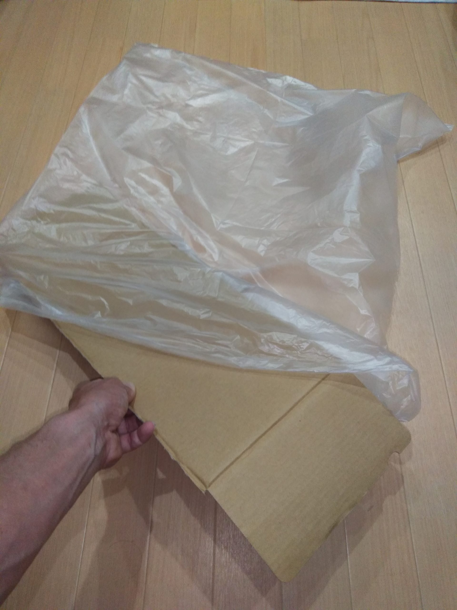 - ドア下の隙間にダンボールを入れたビニール袋をつっこみます