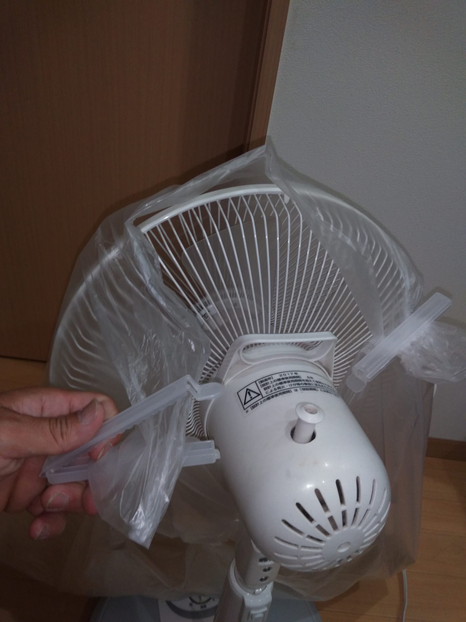 - 扇風機を装着する。装着方法は袋止めクリップをつかうと楽に止められます