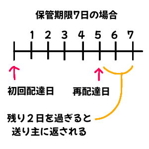この時の保管期限は、その日からまたリセットされるわけではなく、初回に配達した日を基準に決められています。